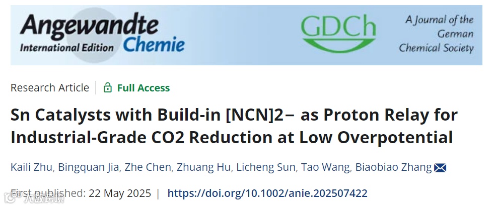 内置[NCN]2−质子中继站的Sn催化剂在低过电位下工业级CO2还原