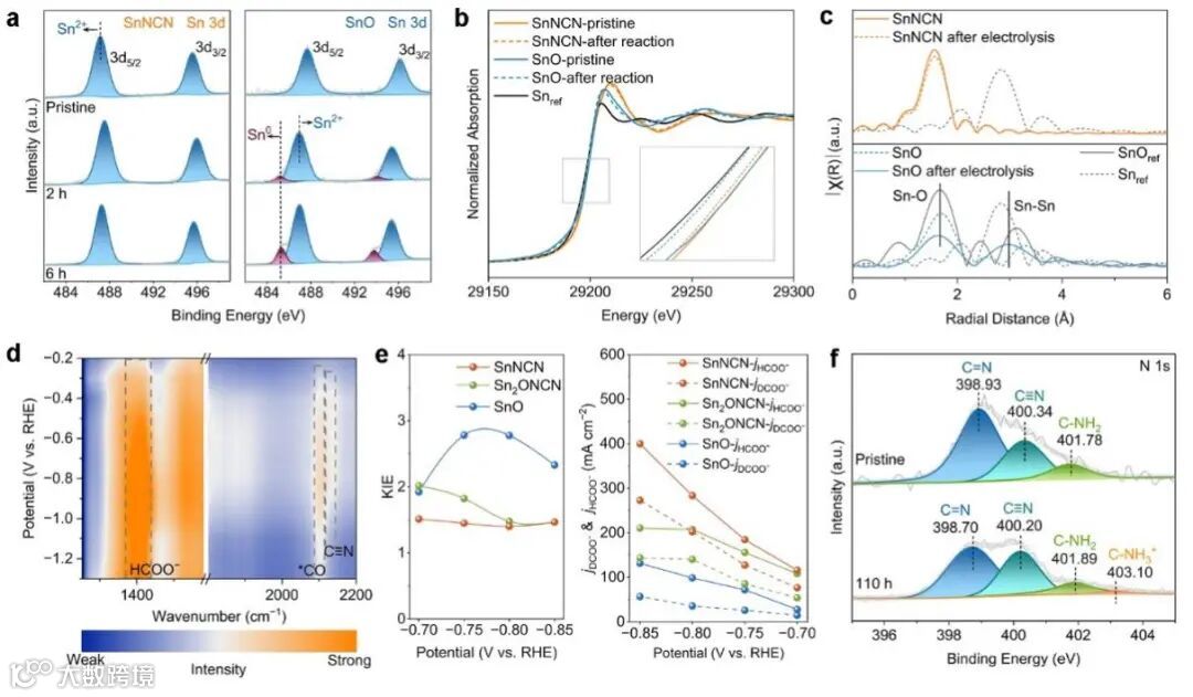 图4:SnNCN、Sn2ONCN和SnO催化剂在电解前后的结构表征及机理研究。
