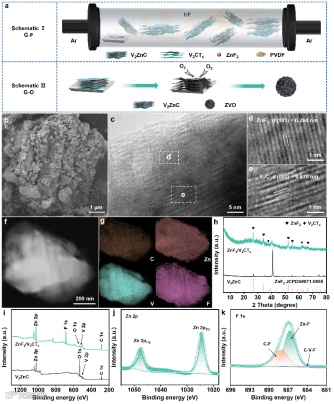 图1高原子利用率气相转化策略及相应ZnF2/V2CTx产物的结构表征