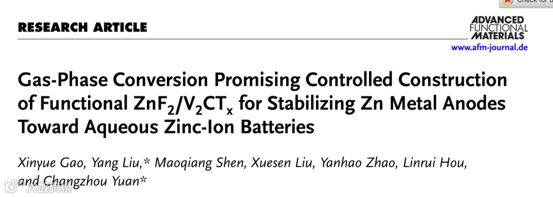 气相转化法助力可控构建ZnF2/V2CTx功能材料稳定水系锌离子电池锌负极