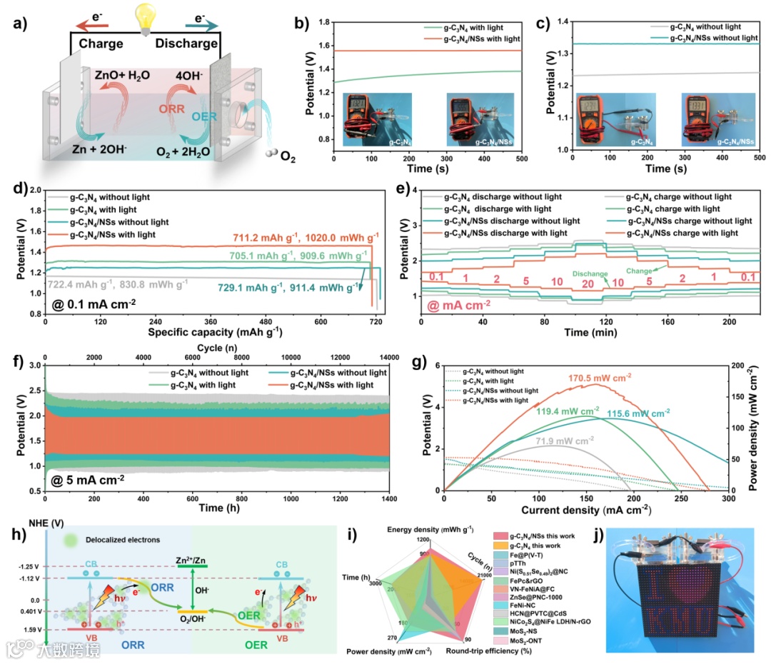 用于高性能可充电锌空气电池的光辅助离域电子驱动g-C3N4/NSs基阴极催化剂
