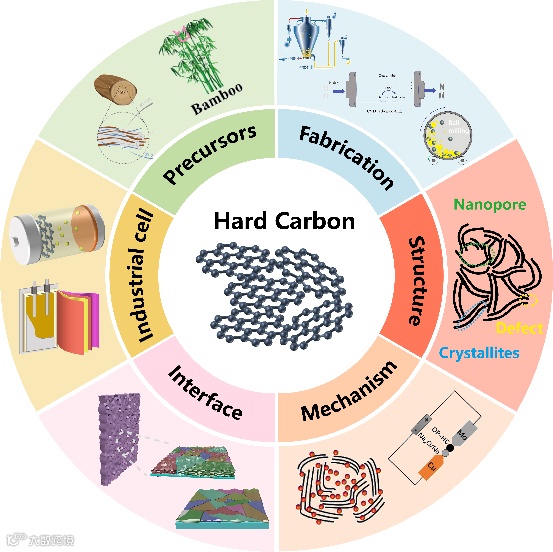 钠离子电池(SIBs)因资源丰富、安全性高及低温性能优异,在大规模储能领域潜力巨大。硬碳(HC)作为主流负极材料,凭借良好电化学性能备受关注,但其电化学性能受前驱体分子结构影响显著,存在容量波动大、首效低等问题。微观结构参数(如层间距、缺陷、闭孔)和固液界面行为共同决定储钠性能,而平台区储钠机制尚存争议。如何实现硬碳微观结构精准调控,阐明储钠机制,提升硬碳电化学性能,成为当前核心挑战。