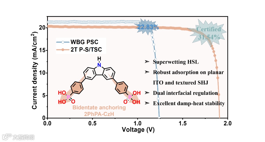 双齿锚定超润湿自组装分子层实现钙钛矿/硅叠层太阳能电池32%的效率