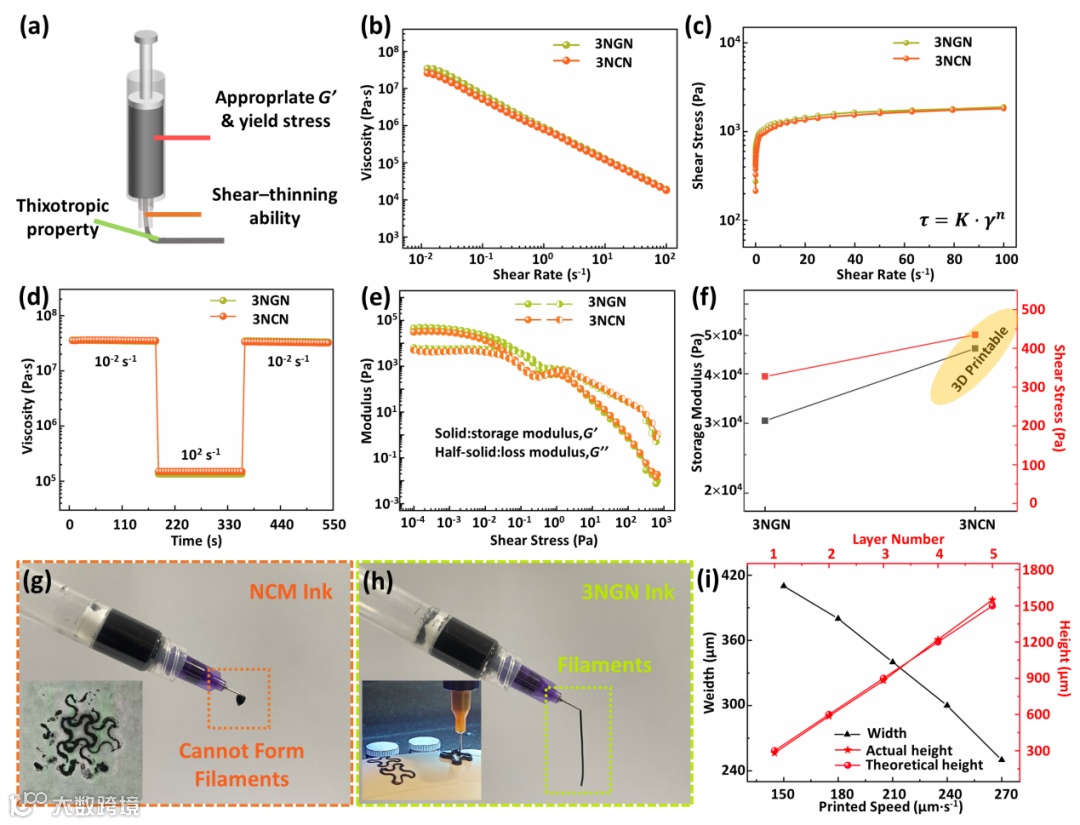 图2. 通用型3D打印浆料的流变性能与打印特性