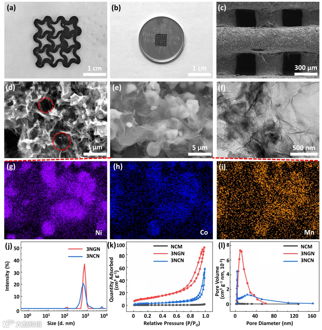 图4. 3D打印电极的结构组成与物相分析