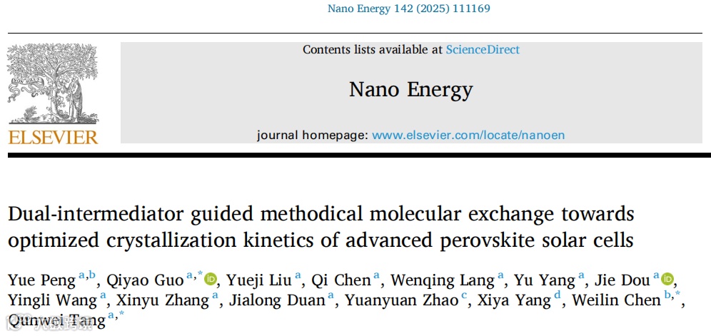山东科技大学唐群委&郭琪瑶团队、东北师范大学陈维林团队,Nano energy:双中间体引导有序的分子交换,优化先进钙钛矿太阳能电池的结晶动力学