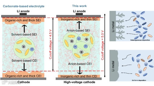 由单离子传导和弱溶剂化纳米聚集体实现的超高压锂金属电池
