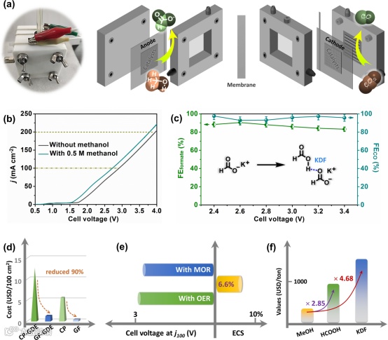 图4. 单分子集成催化电极整合的节能增值模型及经济分析。