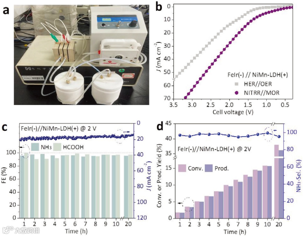 图5. NITRR耦合MOR的两电极催化性能。