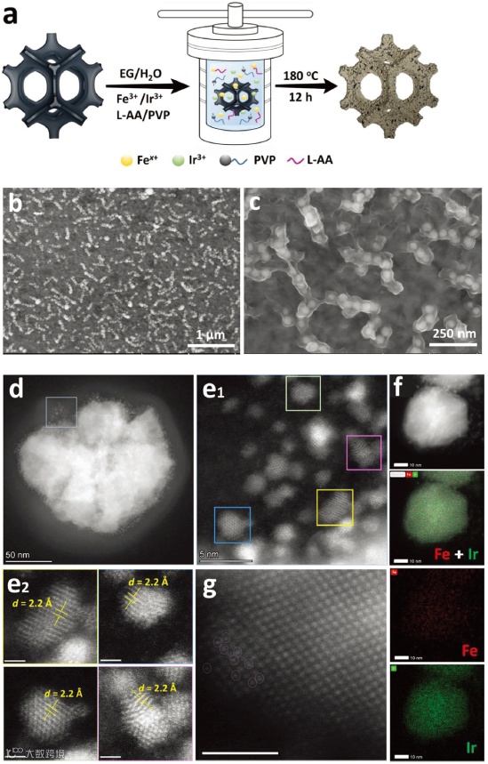 图2. FeIr合金催化剂的合成与表征。