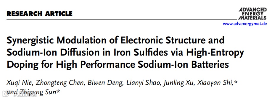 高熵掺杂对硫化铁电子结构和钠离子扩散的协同调控实现高性能钠离子电池