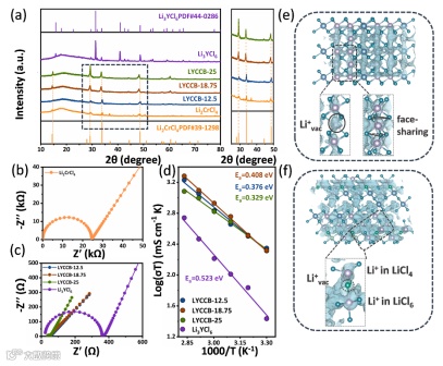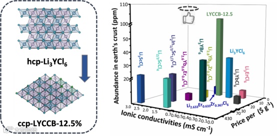 图1. 双位点共掺杂诱导密排六方结构Li3YCl6向立方尖晶石结构转变,实现了卤化物电解质材料在资源性、经济效益及电化学性能的显著提升。
