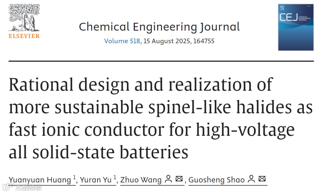 高压全固态电池中资源可持续的类尖晶石卤化物快离子导体的理论设计及实验合成