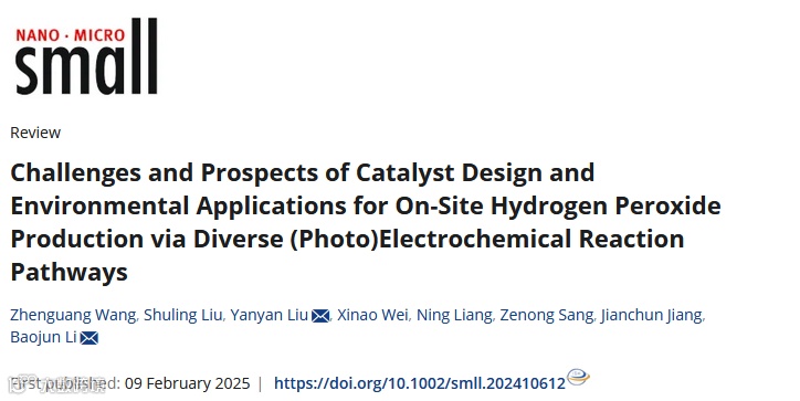 近日,河南农业大学刘艳艳老师、郑州大学李保军老师团队在Small期刊上发表了题为“Challenges and Prospects of Catalyst Design and Environmental Applications for On-Site Hydrogen Peroxide Production via Diverse (Photo)Electrochemical Reaction Pathways”的综述文章。该综述讨论了利用水、氧气和可再生能源可持续生产H2O2方面的最新进展,涵盖了电化学、光化学和光电化学系统。文中分析了不同系统2e-ORR和2e-WOR的机制和评价参数,突出介绍了最先进的(光)电催化剂,并探讨了提高H2O2选择性的策略。此外,还讨论了现场生产H2O2的环境应用。
