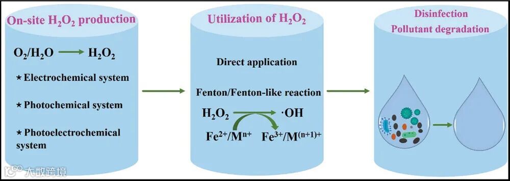 图6不同系统现场生产H2O2和环境应用简单示意图