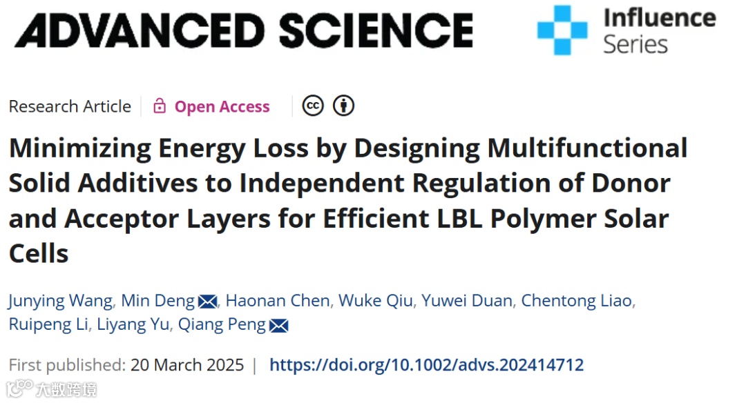 高效LBL聚合物太阳能电池:多功能固体添加剂独立调控给体/受体,助力能量损失最小化