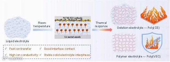 图 1. 热响应型凝胶电解质和聚合物电解质安全性差异示意图。