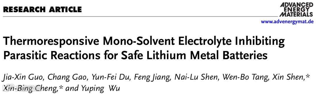 “Thermoresponsive Mono-Solvent Electrolyte Inhibiting Parasitic Reactions for Safe Lithium Metal Batteries”