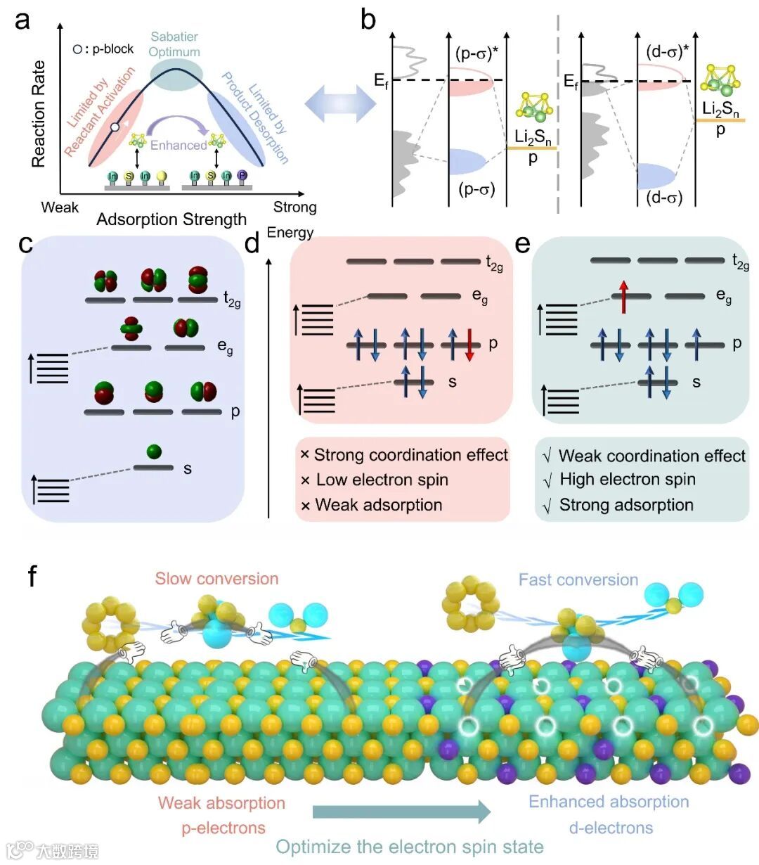 重构电子自旋活化p区金属的d电子以此促进锂硫电池的硫转化动力学