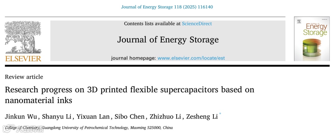 随着柔性电容器需求的不断增长,传统一维材料(如碳纳米纤维、碳纳米管)和二维材料(如石墨烯、MXene)因缺乏高效电荷传输所需的多孔结构,导致比电容和充放电速率受限,难以满足实际应用需求。尽管传统 3D 纳米片制备技术(如定向模板化学气相沉积和模板组装法)能构建低密度、高孔隙率的 3D 石墨烯结构,但存在成本高、效率低和工艺复杂等缺陷,制约了其工业化应用。为此,研究者转向 3D 打印技术结合纳米材料墨水制备电极,以突破上述瓶颈。