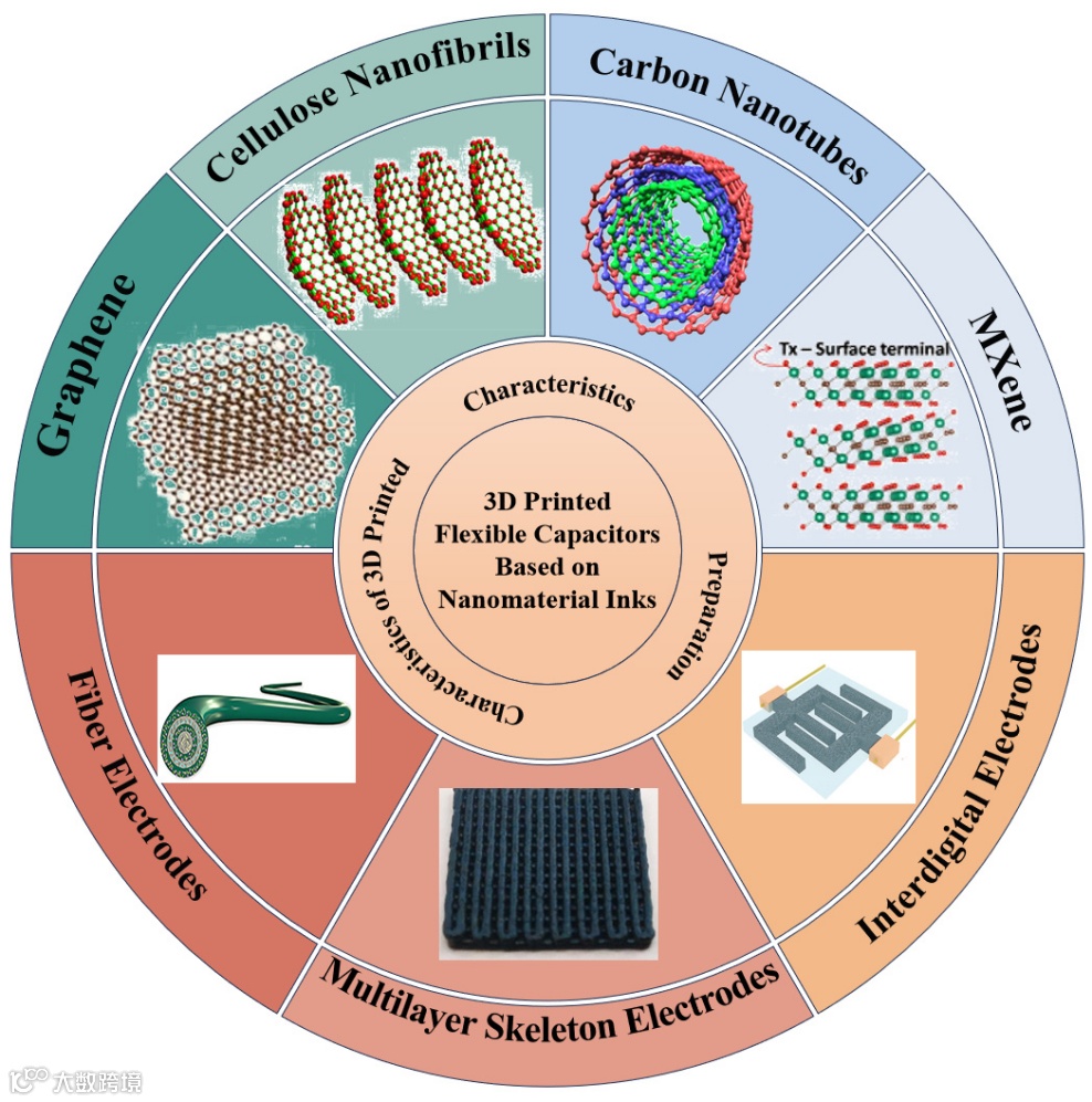 目前大多数的综述论文都集中在使用传统材料制备电容器或使用3D打印技术制造普通电容器上。使用3D打印技术制造由纳米材料组成的柔性超级电容器的探索有限。