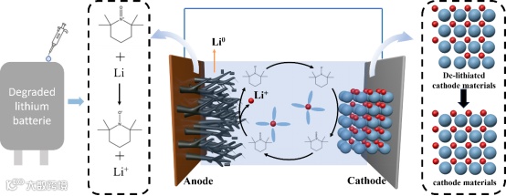 图1:TEMPO修复剂在废旧电池中激活Li0的示意图。