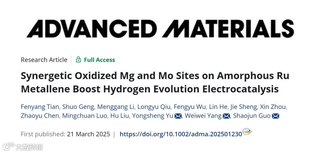 Synergetic Oxidized Mg and Mo Sites on Amorphous Ru Metallene Boost Hydrogen Evolution Electrocatalysis. Adv. Mater. 2025, 2501230.