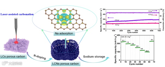 激光辅助碳化法构筑高缺陷氮掺杂多孔碳用于高性能钠储存