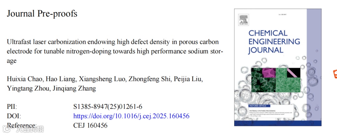 近日,北部湾大学晁会霞教授、浙江海洋大学周英棠教授以及澳大利亚张金强研究员合作,在国际知名期刊 Chemical Engineering Journal 发表了题为 “Ultrafast laser carbonization endowing high defect density in porous carbon electrode for tunable nitrogen-doping towards high performance sodium storage” 的实验文章。该文章探讨了氮掺杂多孔碳材料在钠离子存储器件中的巨大潜力,同时指出,目前在精确且可扩展的结构调控合成技术方面仍面临挑战。研究表明,通过激光碳化结合氮掺杂技术,可构筑具有高密度晶格缺陷和高氮含量的多孔碳材料。该策略能够精准调控缺陷密度并优化碳基体的电子结构,从而显著提升材料的储钠性能,为高性能钠离子存储材料的设计与应用提供了新的思路。