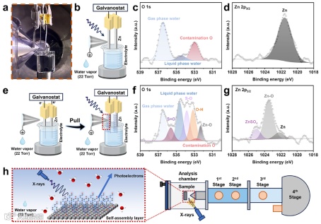 图1. 水系锌离子电池中锌负极表面锌离子沉积行为示意图及原位近常压硬X射线光电子能谱表征图。
