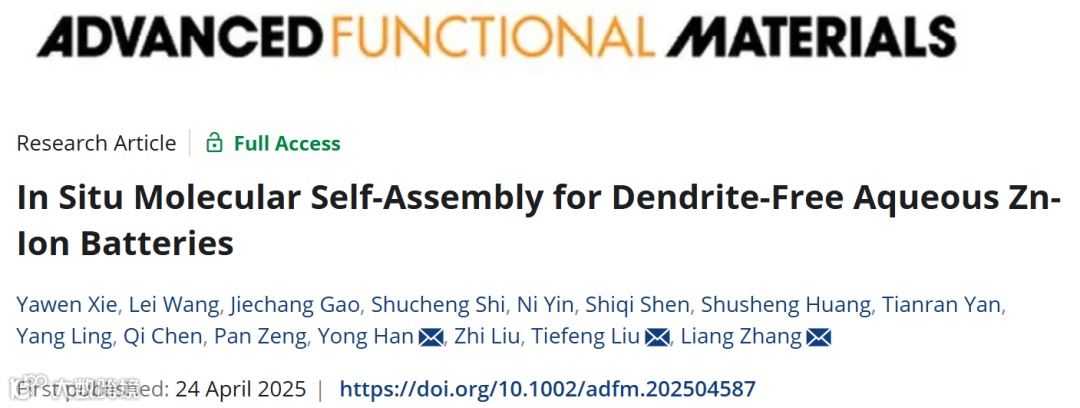 原位分子自组装技术助力水系锌离子电池实现无枝晶化