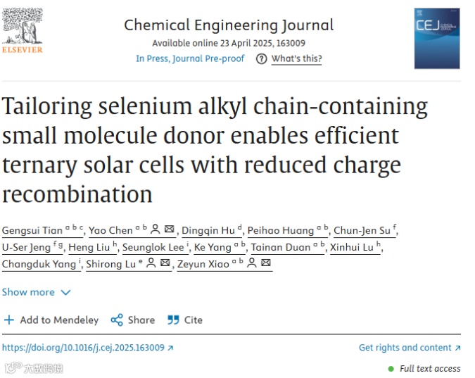 设计含硒烷基链的小分子供体可实现高效的三元太阳能电池,减少电荷复合