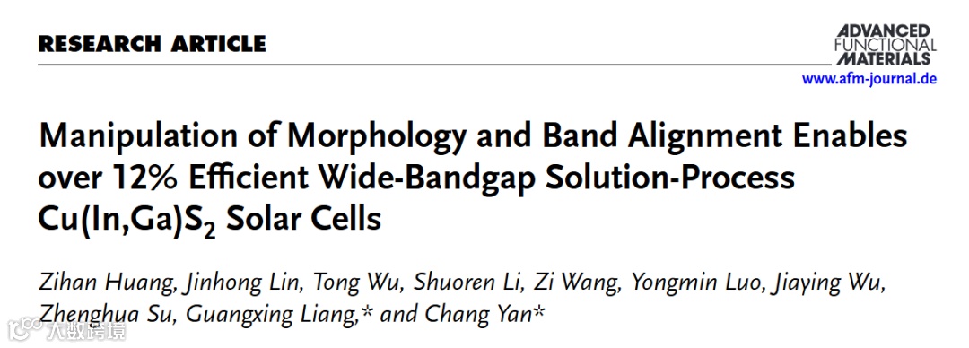 形貌与能带匹配协同调控策略实现效率超过12%的溶液法制备宽带隙Cu(In,Ga)S2太阳电池