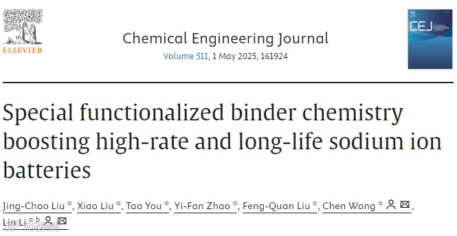 J.-C. Liu, X. Liu, T. You, Y.-F. Zhao, F.-Q. Liu, C. Wang, L. Li, Special functionalized binder chemistry boosting high-rate and long-life sodium ion batteries, Chem. Eng. J. 511 (2025) 161924.