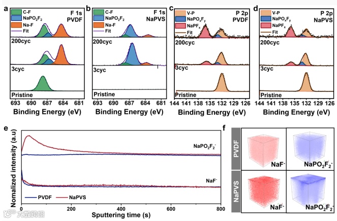 2.NaPVS在首次循环中与NaPF6水解中间体反应,形成富含NaPO₂F₂的高钠离子传导性CEI层。