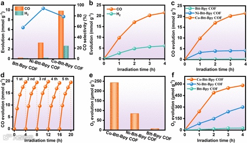 协同双功能共价有机框架(COFs)高效光催化CO2还原和水氧化