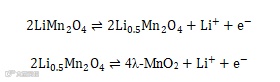 已有文献表明,在电场作用下,LMO可能与Li+发生以下为代表的反应。