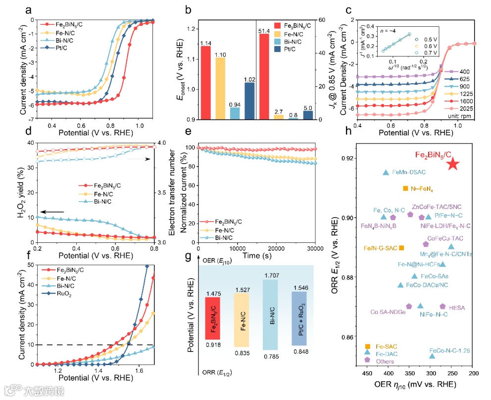 图3. Fe₂BiN₅/C的氧双功能催化性能