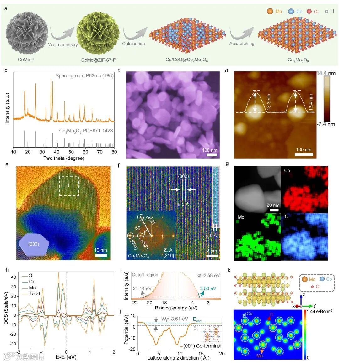 图1.Co2Mo3O8预催化剂的制备、表征及其电子结构信息