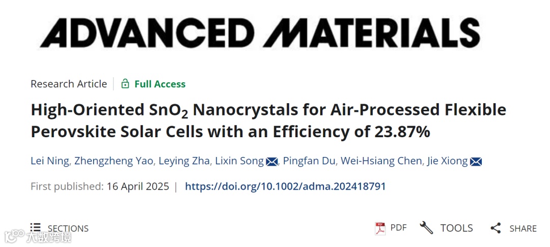高取向SnO2晶粒用于空气制备的柔性钙钛矿太阳能电池取得23.87%的效率