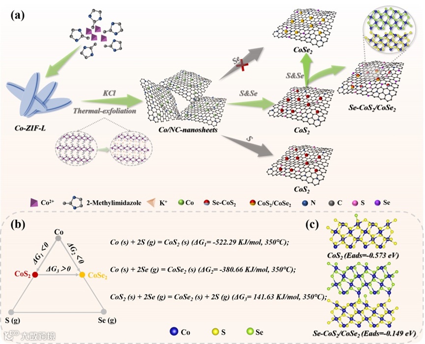 图1 复合材料Se-CoS2/CoSe2的合成示意图及相关理论计算。