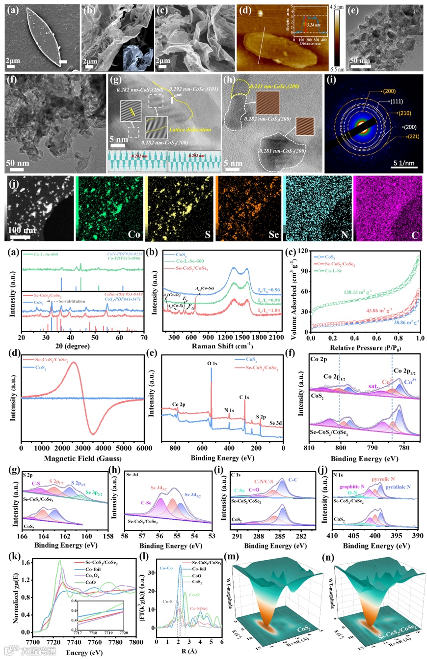 图2 复合材料Se-CoS2/CoSe2 及相关对比材料的结构和成分分析。