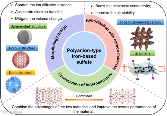 图1. 聚阴离子型铁基硫酸盐正极材料的优化策略。