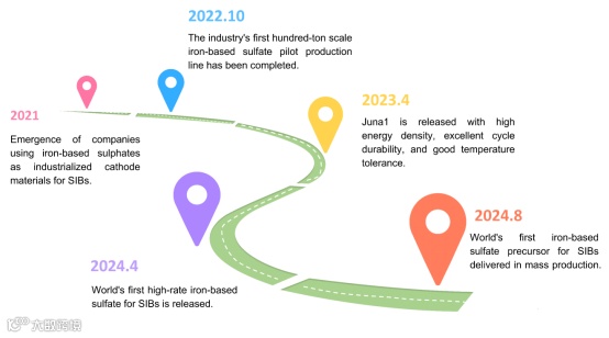 图2. 铁基硫酸盐聚阴离子正极材料的产业化发展。