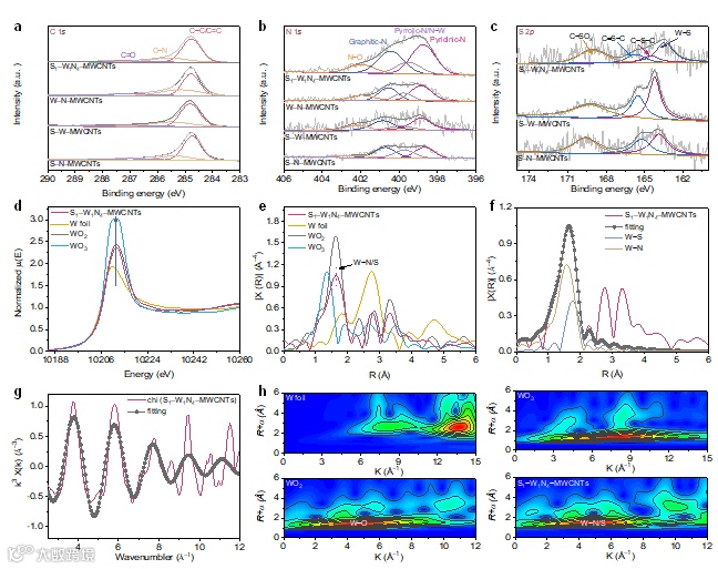 图2. S1−W1N4−MWCNTs催化剂的XPS与同步辐射数据分析