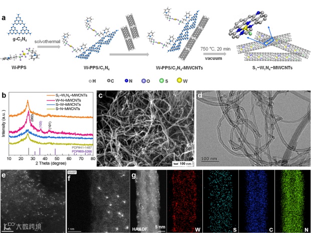 图1. S1−W1N4−MWCNTs催化剂的合成过程与形貌表征