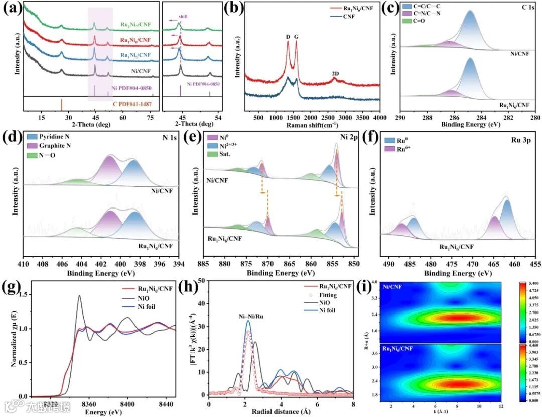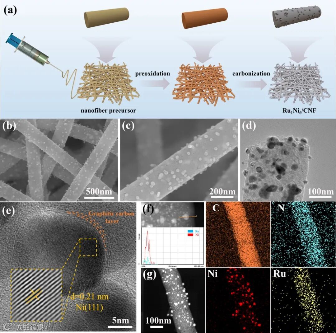 图1:Ru1Ni6/CNF催化剂的制备过程及微观结构表征。