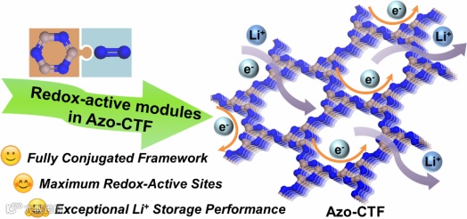 用于先进锂有机电池的双活性位点最大化功能的全共轭偶氮桥接共价三嗪骨架框架