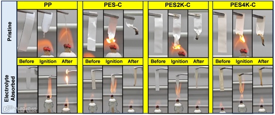 PES2K-C和PES4K-C隔膜具有优异的耐热和阻燃性,进一步保证了电池的安全性。