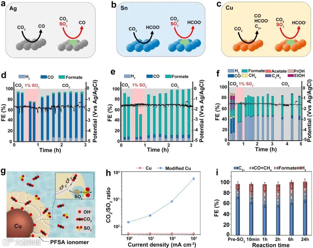 工业烟气中除了包含N2和CO2外,还包含O2、SO2等杂质气体。而这些杂质气体不仅可能会影响CO2RR的选择性,还可能会影响催化剂的结构和使用寿命。因此发展抗杂质气体毒化的设计策略显得尤为重要。